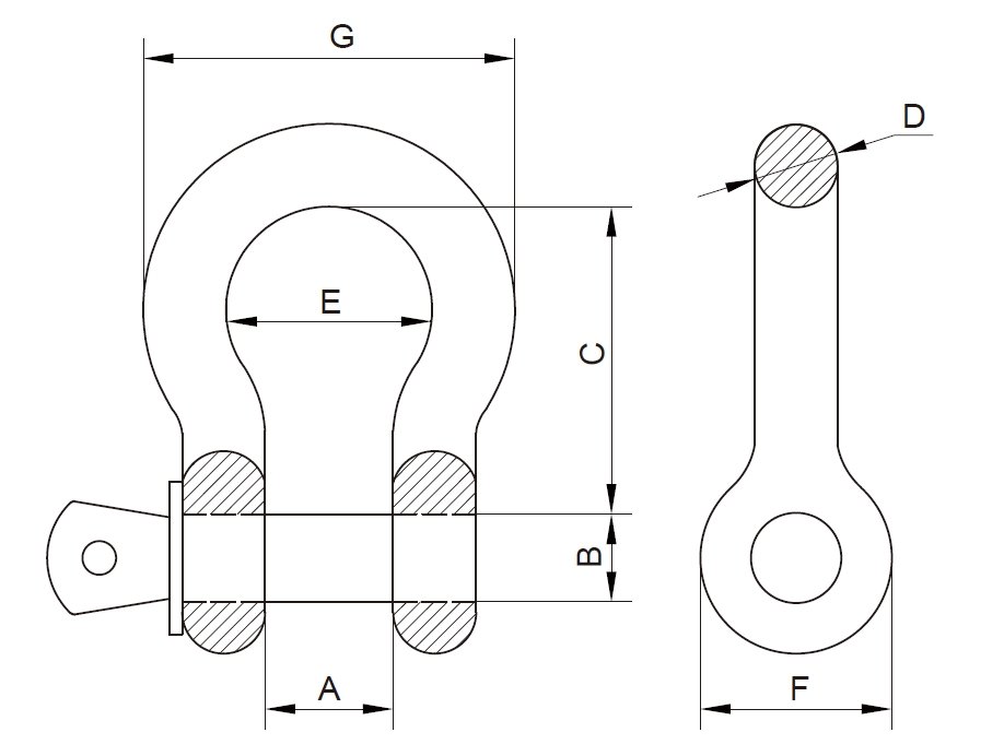 | N.º de stock | Tamaño ( pulgadas ) | WLL(t) | A(mm) | B(mm) | C(mm) | Diámetro (mm) | E(mm) | F(mm) | G(mm) | Peso (kg) |