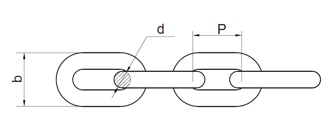 | N.º de stock | DIÁMETRO d (MM) | LONGITUD INTERIOR p (MM) | ANCHO EXTERIOR b (MM) | CARGA DE PRUEBA (N) | CARGA DE ROTURA (N) | PESO DE LA UNIDAD (KG/100M) |