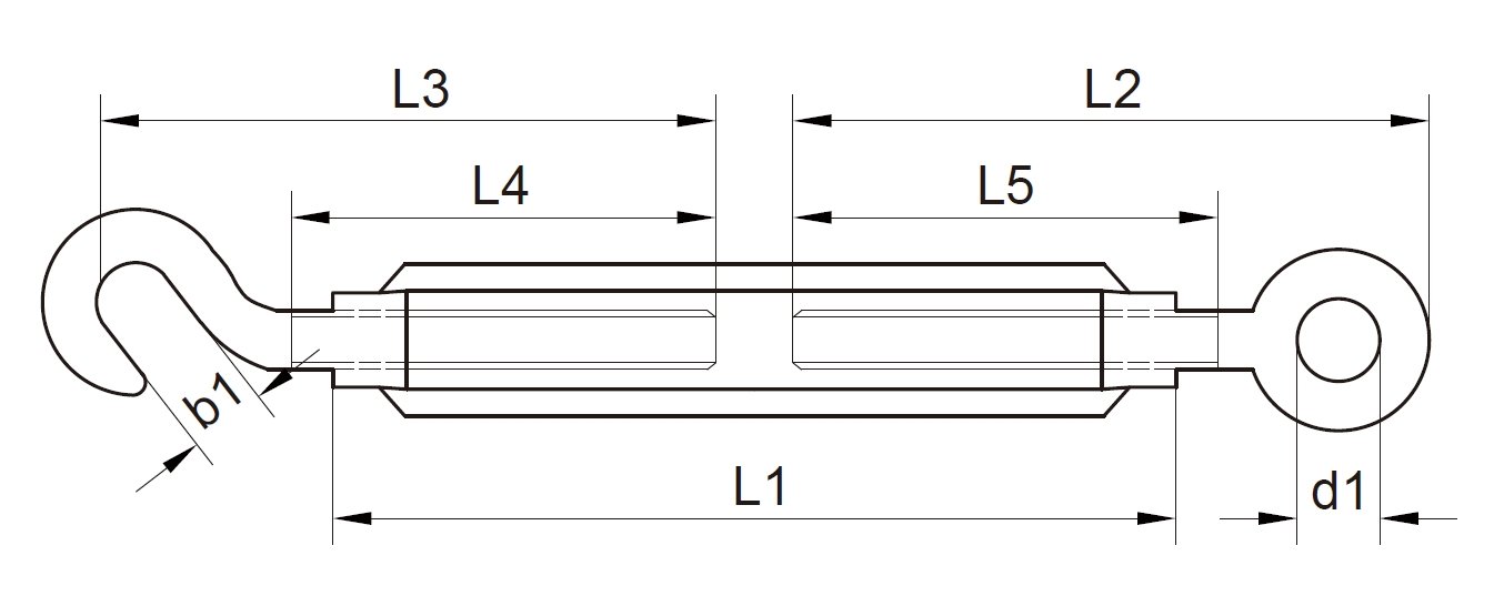 El tensor DIN 1480 con ojo y gancho es un aparejo profesional que cumple con la norma industrial alemana DIN 1480. Un extremo es una hebilla de ojo de anillo cerrado y el otro extremo es un gancho de gancho abierto en forma de arco. El cuerpo principal está hecho de acero al carbono L245 o L360 (correspondiente a Q235, Q355), y el acero inoxidable 304/316 también es opcional. El cuerpo de ajuste tiene roscas izquierdas y derechas incorporadas, y la distancia entre los dos extremos se puede ajustar con precisión mediante rotación. La superficie está galvanizada, galvanizada por inmersión en caliente o pasivada para mejorar la resistencia a la corrosión. La hebilla de ojo proporciona una conexión estable y el gancho de gancho es fácil de conectar rápidamente. Es adecuado para cables de acero, varillas de tracción, etc., y se usa ampliamente en la industria, la construcción y otras escenas que requieren una conexión flexible y un control preciso de la tensión.