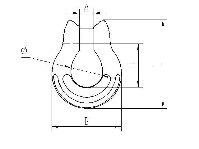 | Stock no. | Size (mm) | WLL (t) | A (mm) | B (mm) | H (mm) | L (mm) | φ (mm) | Weight (kg) |