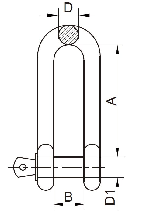 El grillete de tipo D largo es un derivado del grillete tipo D. Recibe su nombre porque la longitud del anillo de arqueo es entre un 20 % y un 50 % mayor que la del grillete tipo D estándar. El cuerpo principal es una estructura de bucle cerrado en forma de "D larga", compuesta por un anillo de arqueo largo forjado integralmente, un eje de pasador y un dispositivo antideslizante. Está fabricado principalmente con acero al carbono (galvanizado por inmersión en caliente), acero inoxidable 304 y acero inoxidable 316. La carga nominal de trabajo es de 0,3 a 100 toneladas y el factor de seguridad es ≥4,0. Su diseño de anillo extendido permite el paso de cables de acero más gruesos o de varios cables en paralelo, lo que resulta ideal para aplicaciones que requieren conexiones de gran diámetro. Se utiliza ampliamente en elevación, embarcaciones, industria forestal y otros sectores que requieren la conexión de aparejos gruesos, equilibrando la capacidad de carga y la compatibilidad espacial.