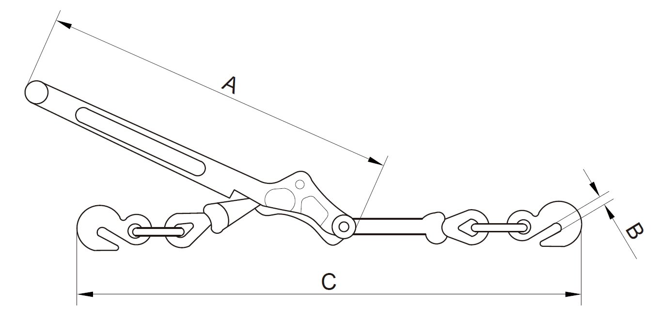Gancho y cadena seguros: Equipados con ganchos de acero de aleación G70 con gran capacidad de carga y un mecanismo de bloqueo fiable. La cadena también está fabricada en acero G70 de alta resistencia, con cada eslabón cuidadosamente diseñado para garantizar la máxima resistencia y flexibilidad. El gancho y la cadena se unen para sujetar firmemente la carga y transmitir la fuerza de tensión.