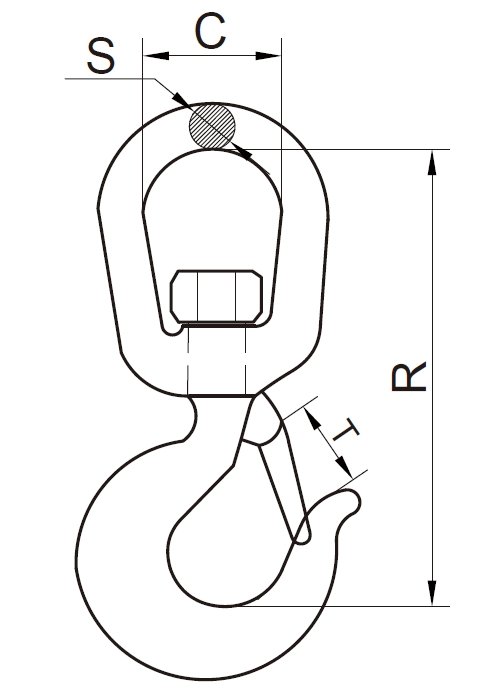 Geometría de gancho de precisión. La garganta (apertura) y el arco (cuerpo curvo) del gancho están diseñados con dimensiones optimizadas para alojar anillas de carga, eslabones de cadena o grilletes estándar. El ancho de garganta garantiza un ajuste perfecto para herrajes compatibles (p. ej., eslabones de cadena G70/G80), mientras que el arco curvo distribuye las fuerzas de carga uniformemente por todo el cuerpo del gancho, reduciendo la concentración de tensión en los puntos débiles. Esta geometría minimiza el riesgo de que el gancho se doble o agriete bajo cargas nominales.