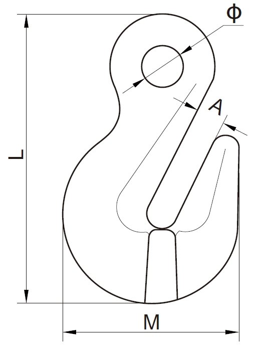 El gancho de agarre acortador de ojal G100 es un gancho de elevación de alta resistencia. Fabricado en acero de aleación forjado con tratamiento térmico, soporta una carga de entre 1,4 y 19 toneladas. Su diseño único permite acortar fácilmente cadenas o cables de acero, su forma de ojal facilita su conexión y su amplia boca es ideal para todo tipo de operaciones de elevación.