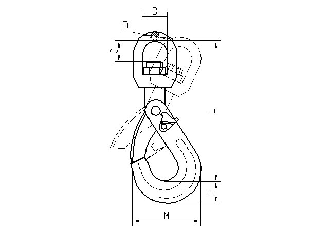 Cuando el gancho se somete a tensión, el dispositivo de autobloqueo se cierra automáticamente para evitar que el objeto colgante se caiga. Solo después de la descarga, el dispositivo de activación permite que el gancho se abra.