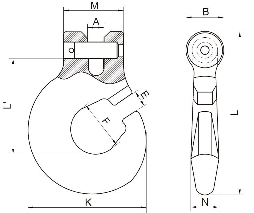 | N.º de stock | Tamaño | Carga útil máxima (t) | A | B | Y | F | METRO | norte | K | El' | L | Peso (kg) |