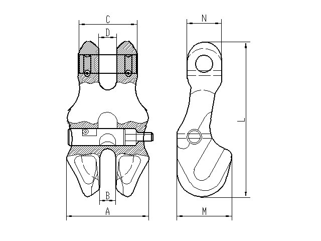 El embrague de cadena de horquilla G100 con pasador es un conector de cadena fabricado en acero aleado de alta resistencia y tenacidad. Está templado y revenido, con un factor de seguridad de 4:1. Es compatible con cadenas G100 y permite acortar la longitud de la eslinga, lo que permite aprovechar al máximo su capacidad de carga. El diseño del pasador de bloqueo mejora la seguridad y evita que la cadena se desprenda.