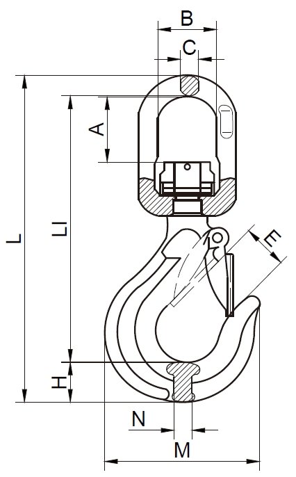 El gancho giratorio G80 con pestillo y rodamiento es un gancho giratorio autoblocante de grado 80 con rodamiento. Está forjado con acero de aleación de alta calidad y templado y revenido para una alta resistencia. Los rodamientos integrados permiten una rotación suave de 360°, reduciendo eficazmente la torsión de la eslinga. Equipado con una robusta lengüeta autoblocante, se bloquea automáticamente cuando está cargado y ofrece una gran seguridad. Es compatible con cadenas G80 según la norma EN818-2, con cargas de trabajo de 2 a 31,5 toneladas. Todos los productos han sido verificados pieza por pieza a 2,5 veces la carga de trabajo, 20.000 veces la prueba de fatiga a 1,5 veces la carga de trabajo e inspección 100% por partículas magnéticas, con una calidad confiable.