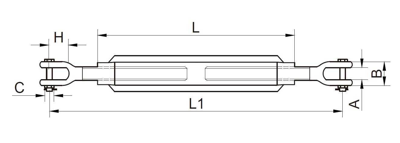 El tensor tipo estadounidense es un dispositivo de ajuste de tensión que cumple con las normas estadounidenses. Consta de una varilla roscada a izquierdas, una varilla roscada a derechas y un manguito de ajuste intermedio. Las varillas roscadas en ambos extremos se extienden y retraen simultáneamente girando el manguito para ajustar con precisión la tensión del cable. Los materiales utilizados son principalmente acero al carbono de alta resistencia, acero inoxidable 304 y acero inoxidable 316. El acero al carbono galvanizado es adecuado para entornos industriales secos, el acero inoxidable 304 es adecuado para entornos húmedos comunes y el acero inoxidable 316 está diseñado para entornos altamente corrosivos como océanos y productos químicos. Se utiliza ampliamente en maquinaria de elevación, amarre de barcos, construcción y otros sectores con requisitos estrictos de control de tensión.