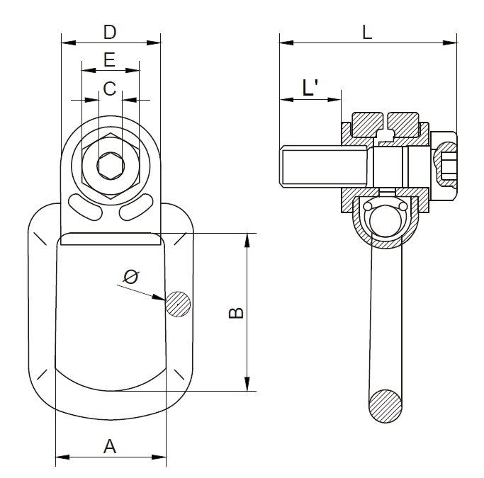 Este punto de elevación puede girar 360° con la dirección de la fuerza.