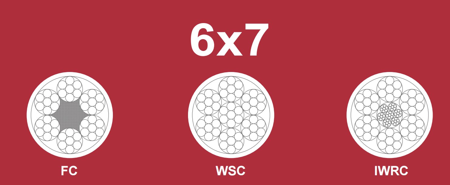 Estructura del cable de acero: 6*7-FC, 6*7-WSC, 6*7-IWRC, 6*9W-FC, 6*9W-WSC