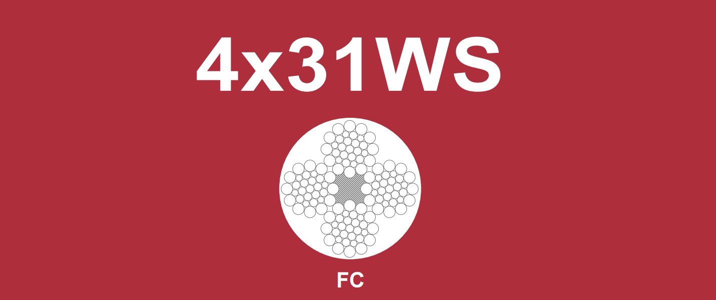 El cable 4X31WS es un cable multitorón de alto rendimiento. "4X31" significa que está compuesto por 4 torones, cada uno con 31 alambres de acero. "WS" representa la estructura de torsión mixta de Siru y Warinton, que combina las ventajas de ambos métodos de torsión.