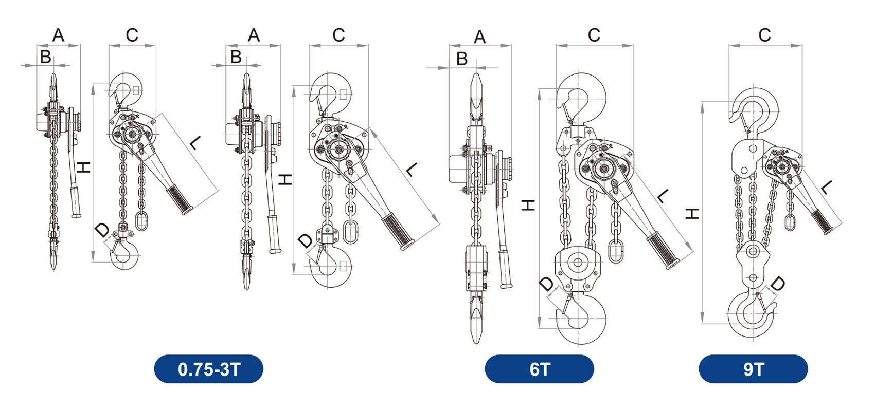 Características del polipasto de palanca serie HSVL: